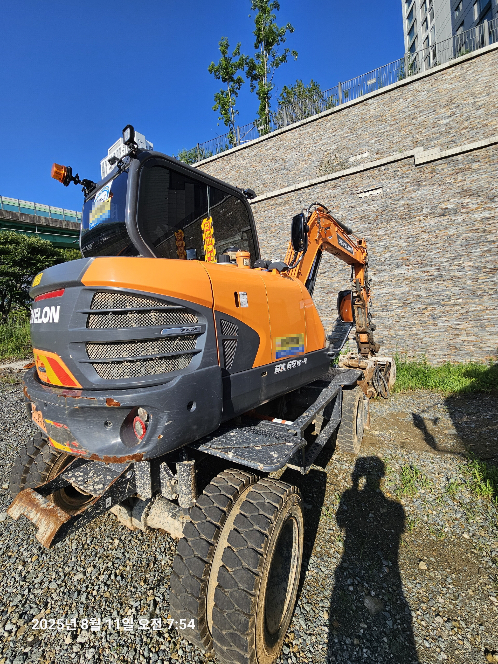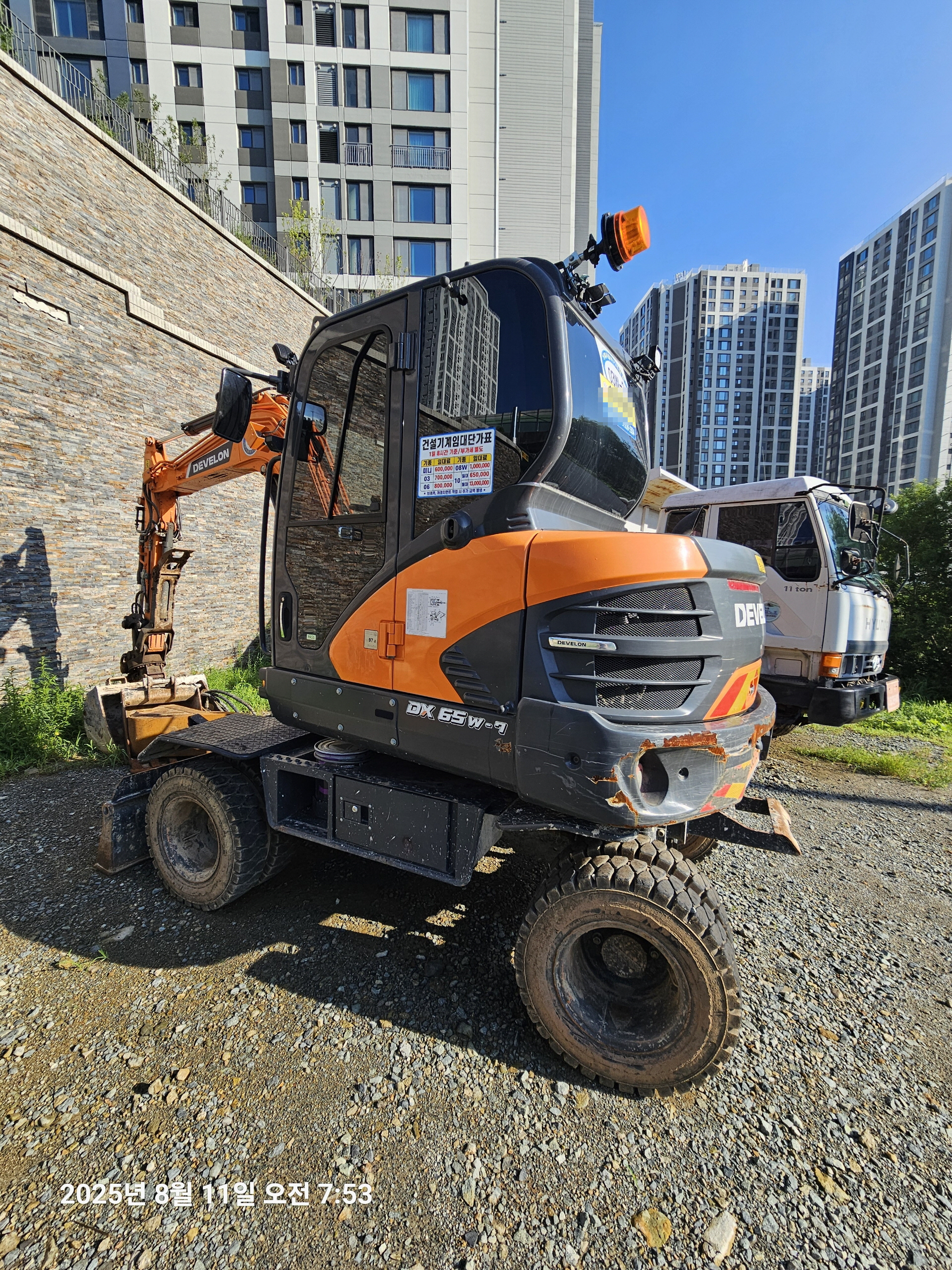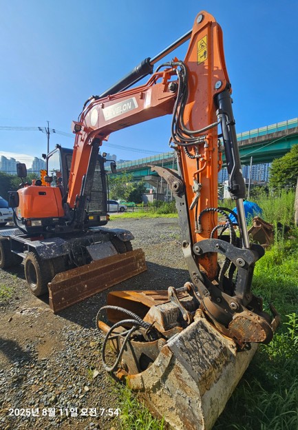 두산 DX65W 2023년식 1857시간 회전링크 코끼리집게 더블타이어 뿌레카 버켓3종